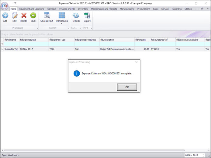 - An Expense Processing message box will pop up informing you that;