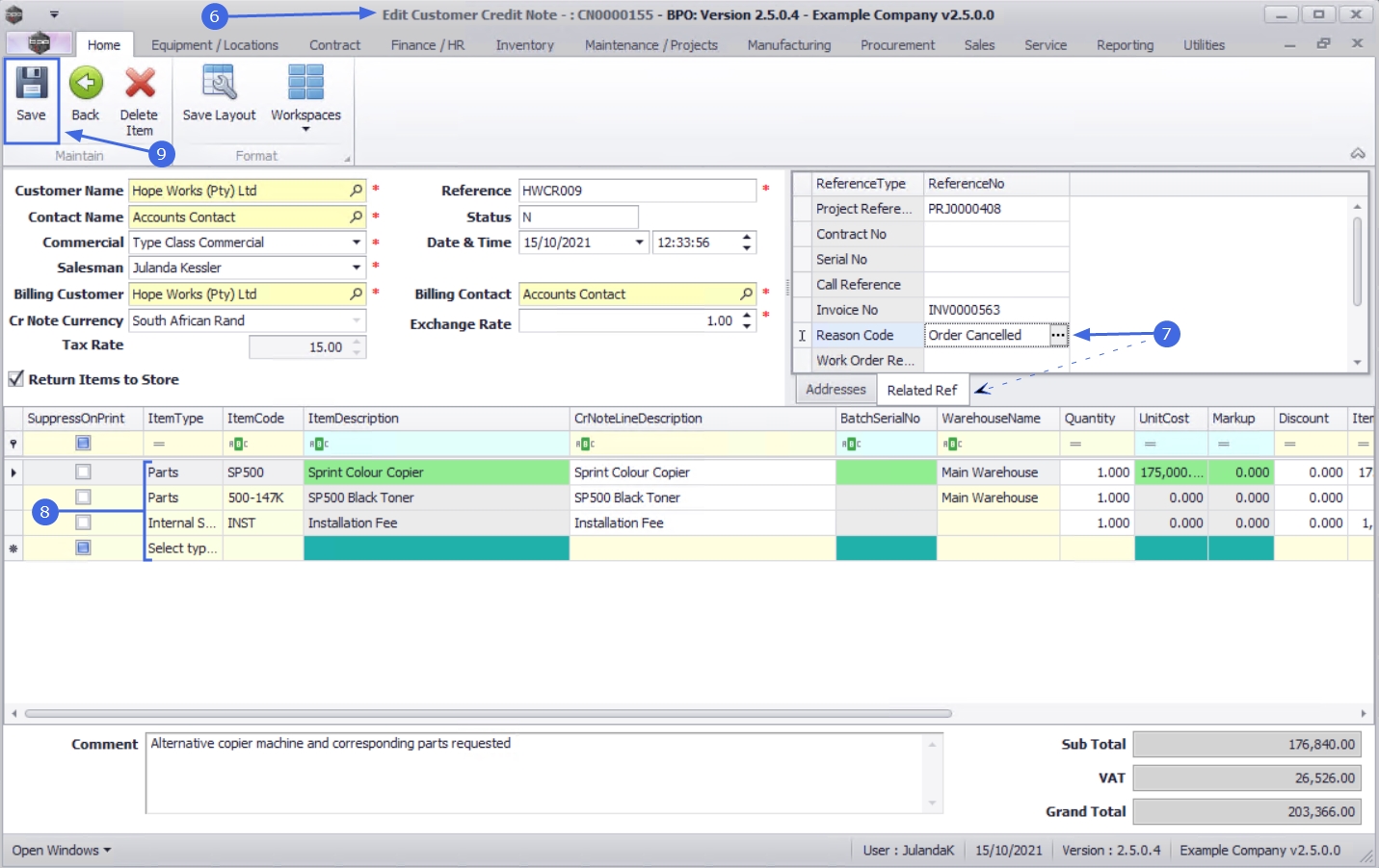 • For the purpose of this manual, a Reason Code has been added to the Related Ref details.