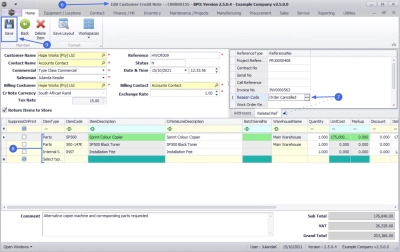 Note that no changes can be made to the information on the Credit note as this is a View only screen.