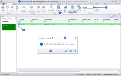 You can send Credit Notes directly from the Print Queue from the Sales Credit Notes for Customer screen, instead of going to the Print Queue Reprint screen. This will enable you to forward a batch of credit notes to the customer.