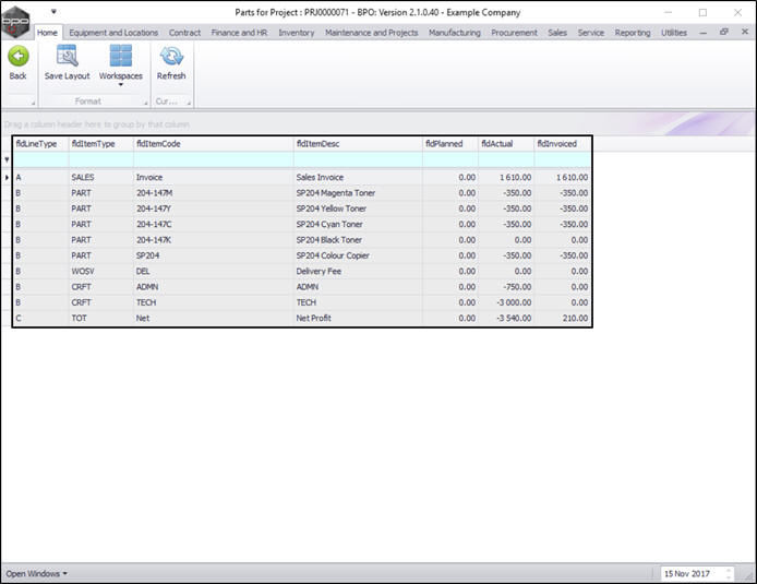 All cost items and invoiced processed against this project will be listed, along with a Net Profit total.