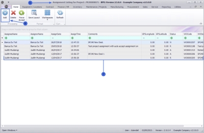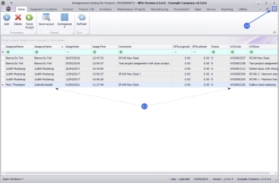 - A list of the assignment details for the Technician(s) that have been assigned to this Project with their Work Order Codes can be viewed from this screen.