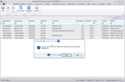 - Are you sure you want to delete this assignment from the project [project ref number]?