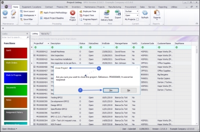 - Are you sure you want to close this project: Reference: PRJ[project number], it cannot be reopened.