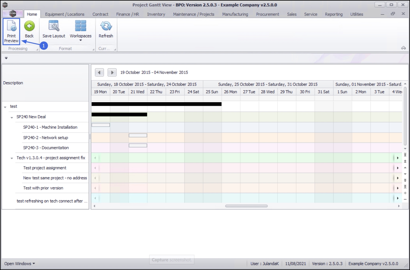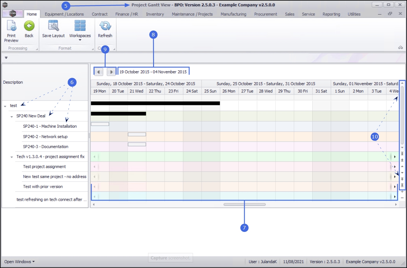 1. The Project Gantt View for the main project layer with all sub-layers will display.