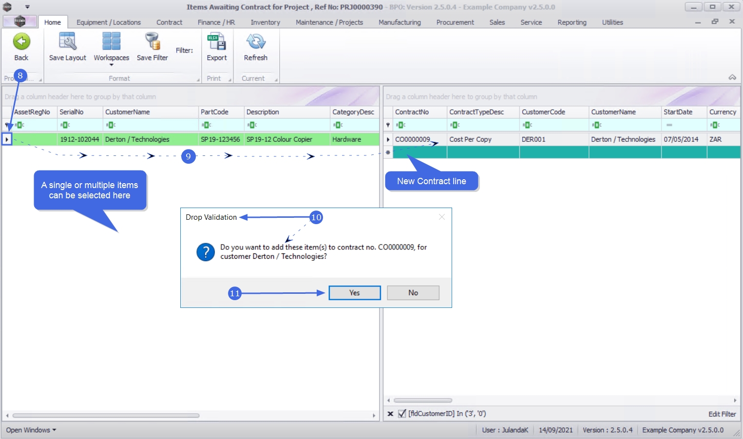 - Do you want to add these items(s) to contract no. [contract number], for customer [Customer Name]?