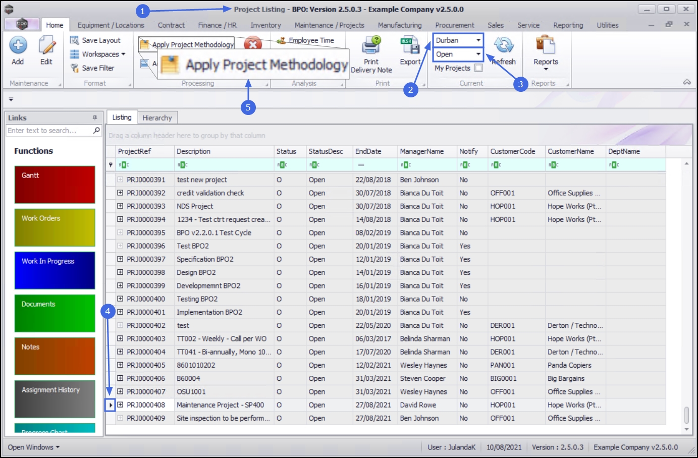When a Project Methodology is applied to a project, the layers within the methodology will generate sub projects and work orders as set up in the methodology.