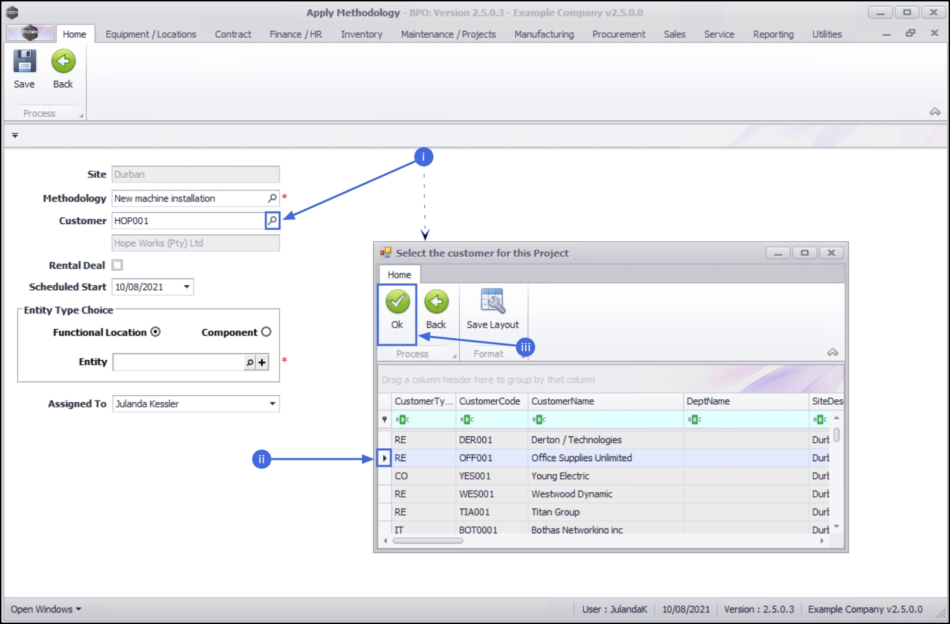 Click in the relevant radio button to select whether to link this project to a Functional Location or a Component.