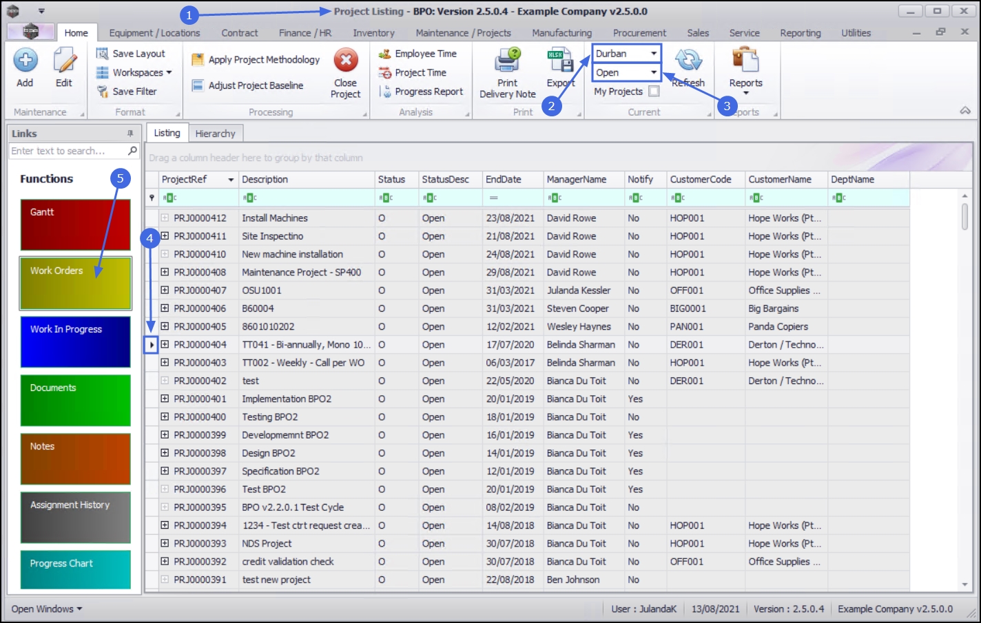 | Ribbon Access: Maintenance / Projects > Projects |
