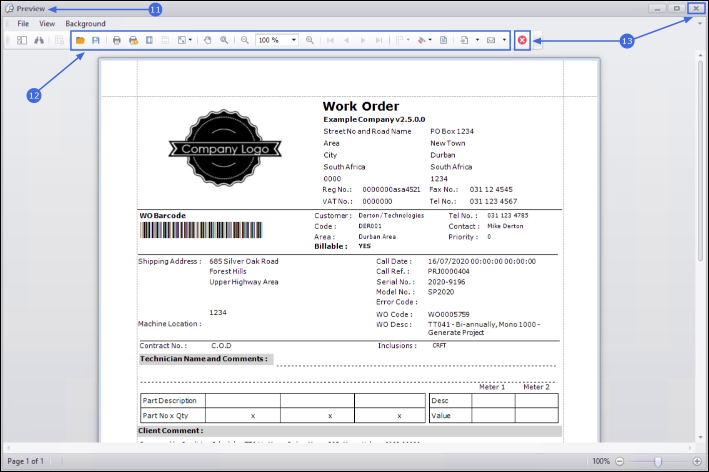 - From here you can make cosmetic changes to the document as well as Zoom, View, Print, Export or Email the Work Order.