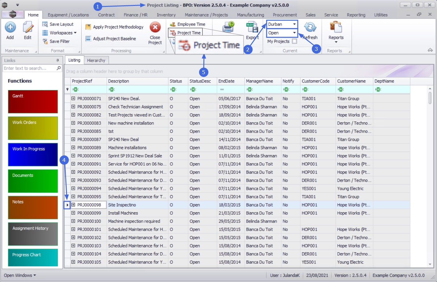 Ribbon Access: Maintenance / Projects   >   Projects
