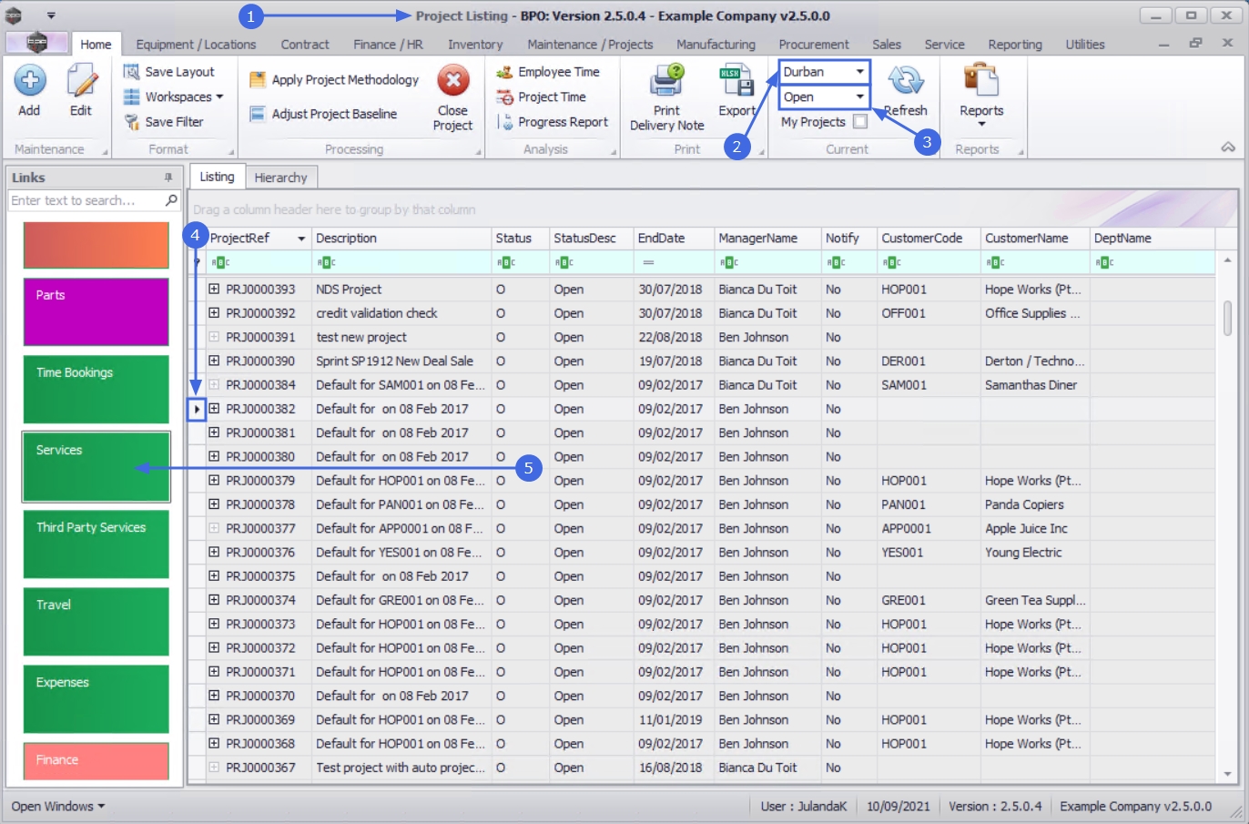 - From this screen you will be able to view all the Service information linked to a Work Order for a selected project.