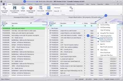 Columns can be added or hidden from a data grid. This enables a user to customise the data grid to their own preference.