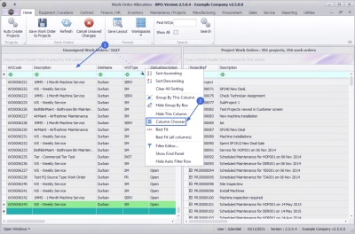Right click in any column header to display the Filter drop-down menu. - Click on Column Chooser.