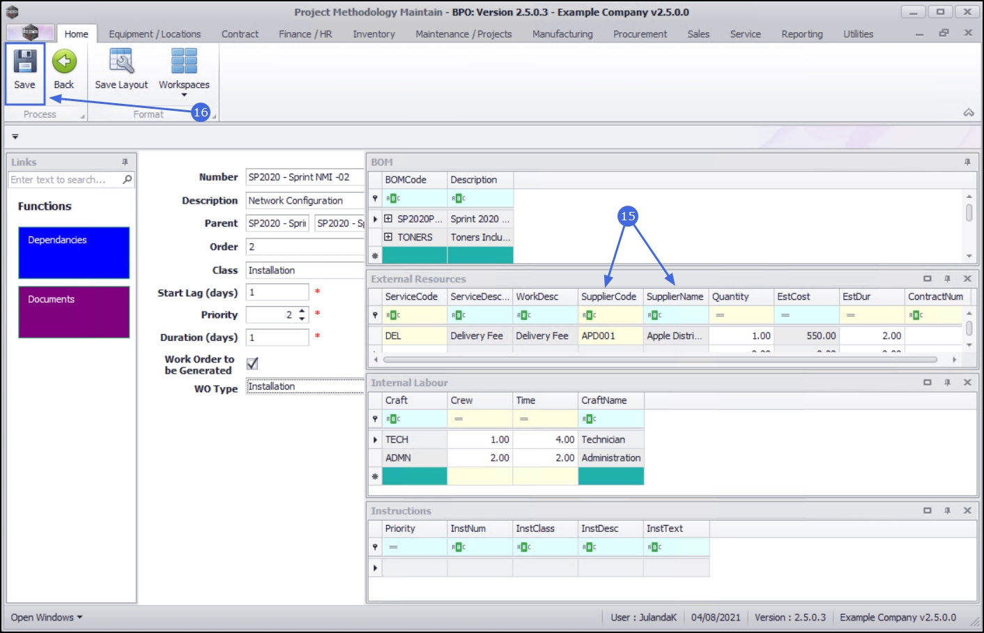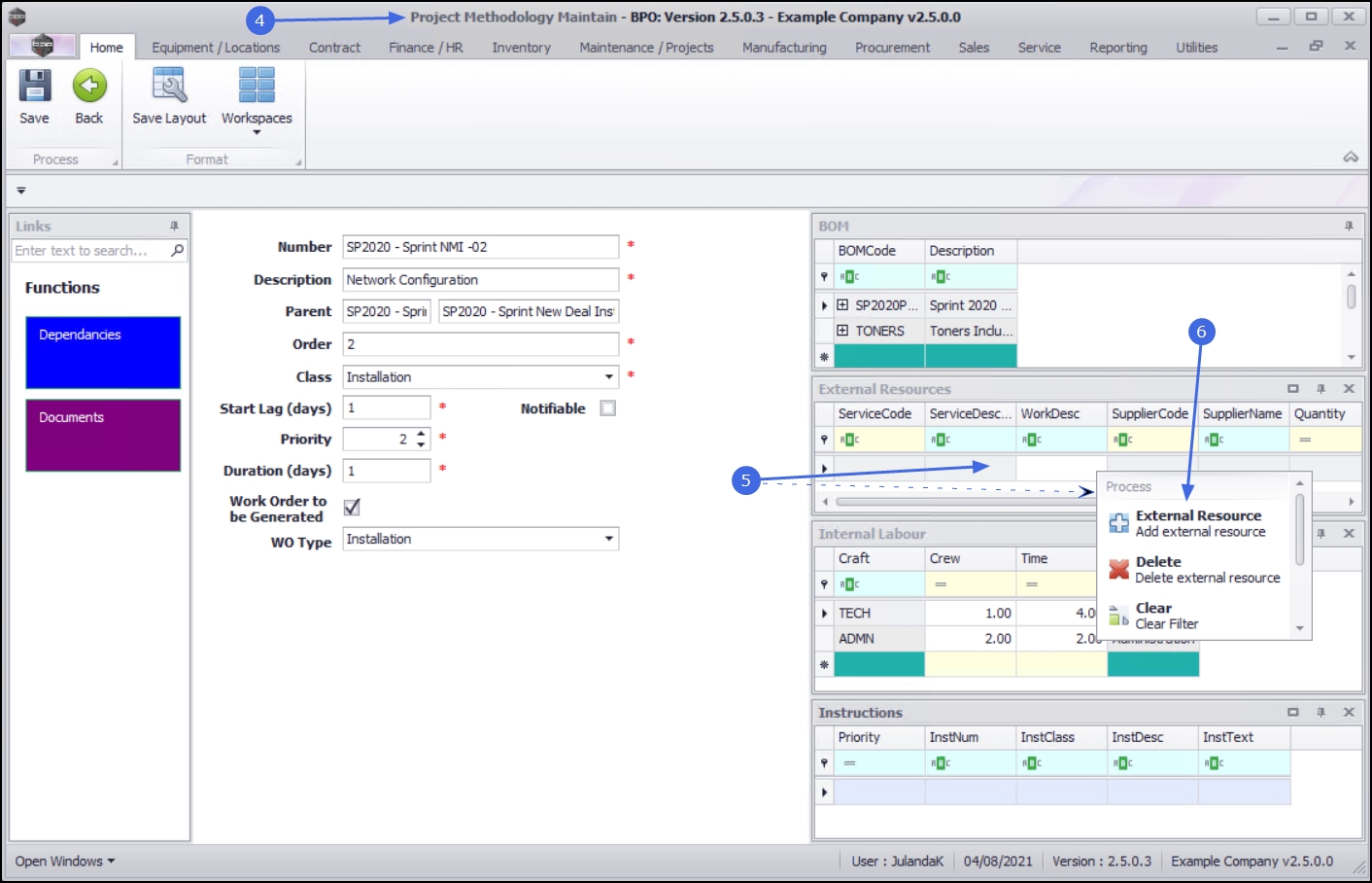 For the purpose of this manual, an External Resource has been linked using the Edit function on the Project Maintenance screen, but can also be linked when creating the project.