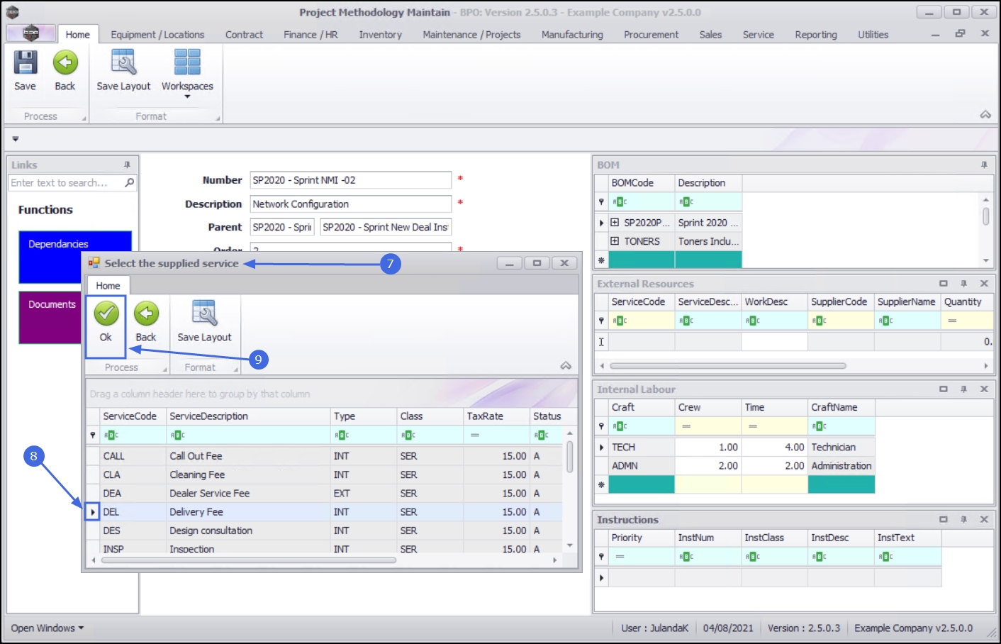 | Ribbon Access: Maintenance / Projects > Standard Methodology |