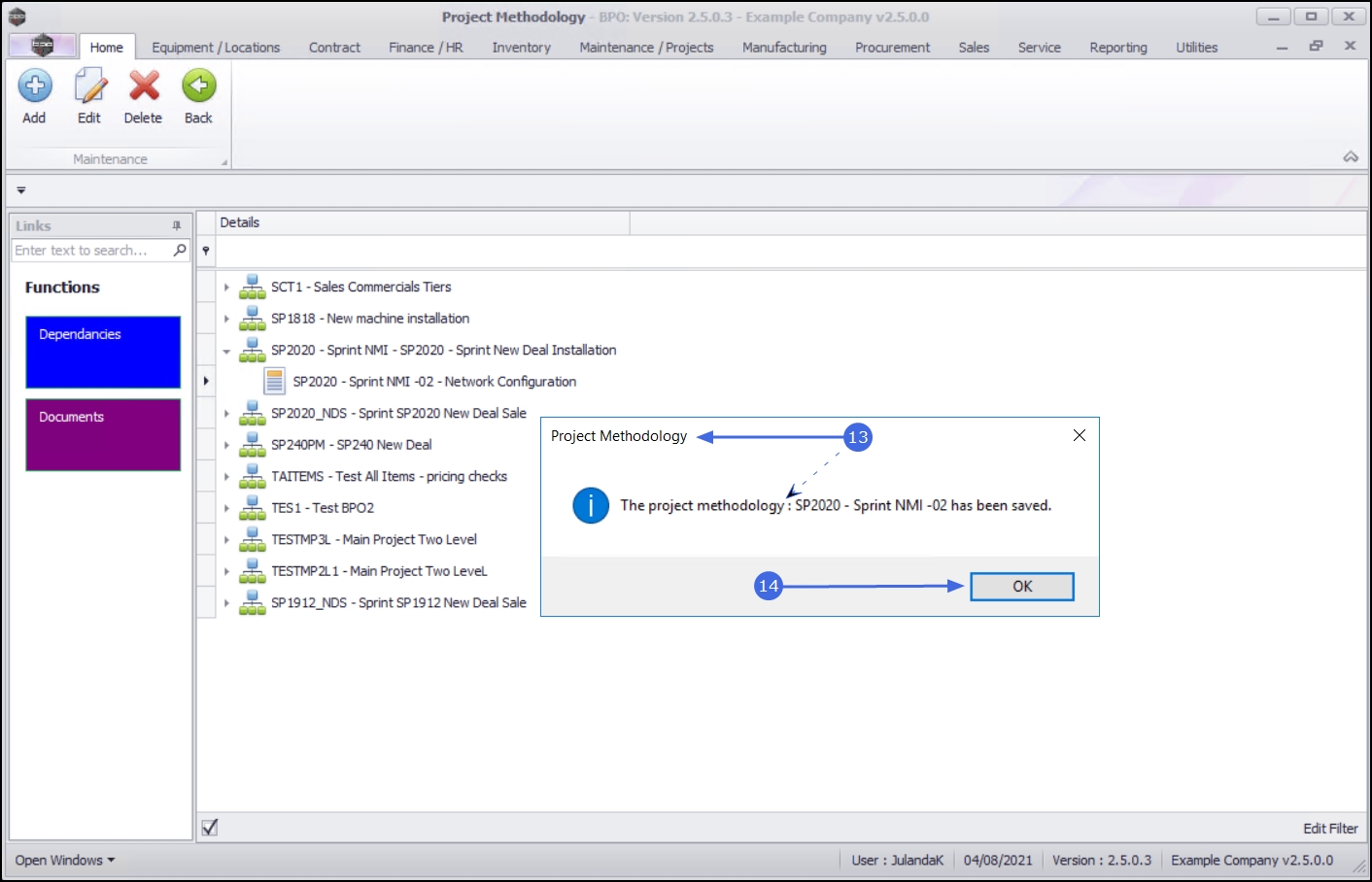 • The project methodology : [methodology name] has been saved.