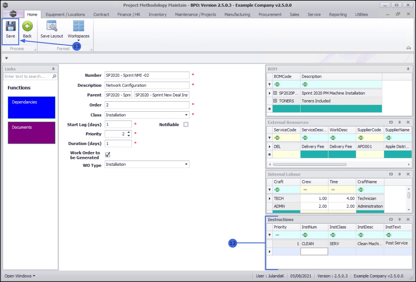 | Ribbon Access: Maintenance / Projects > Standard Methodology |