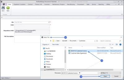 - The File and Path fields will be populated with the details of the selected document.
