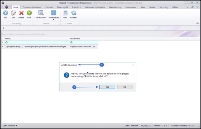 - Select the row of the document you with to remove from the project methodology layer.