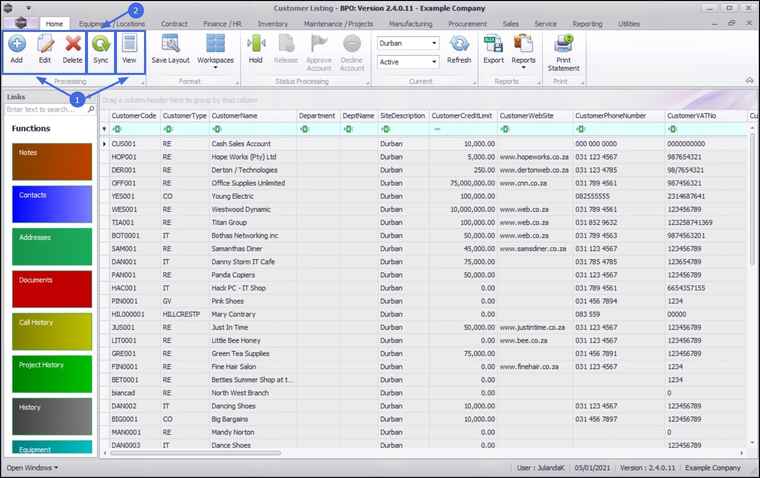 | Ribbon Access: Sales > Customers |