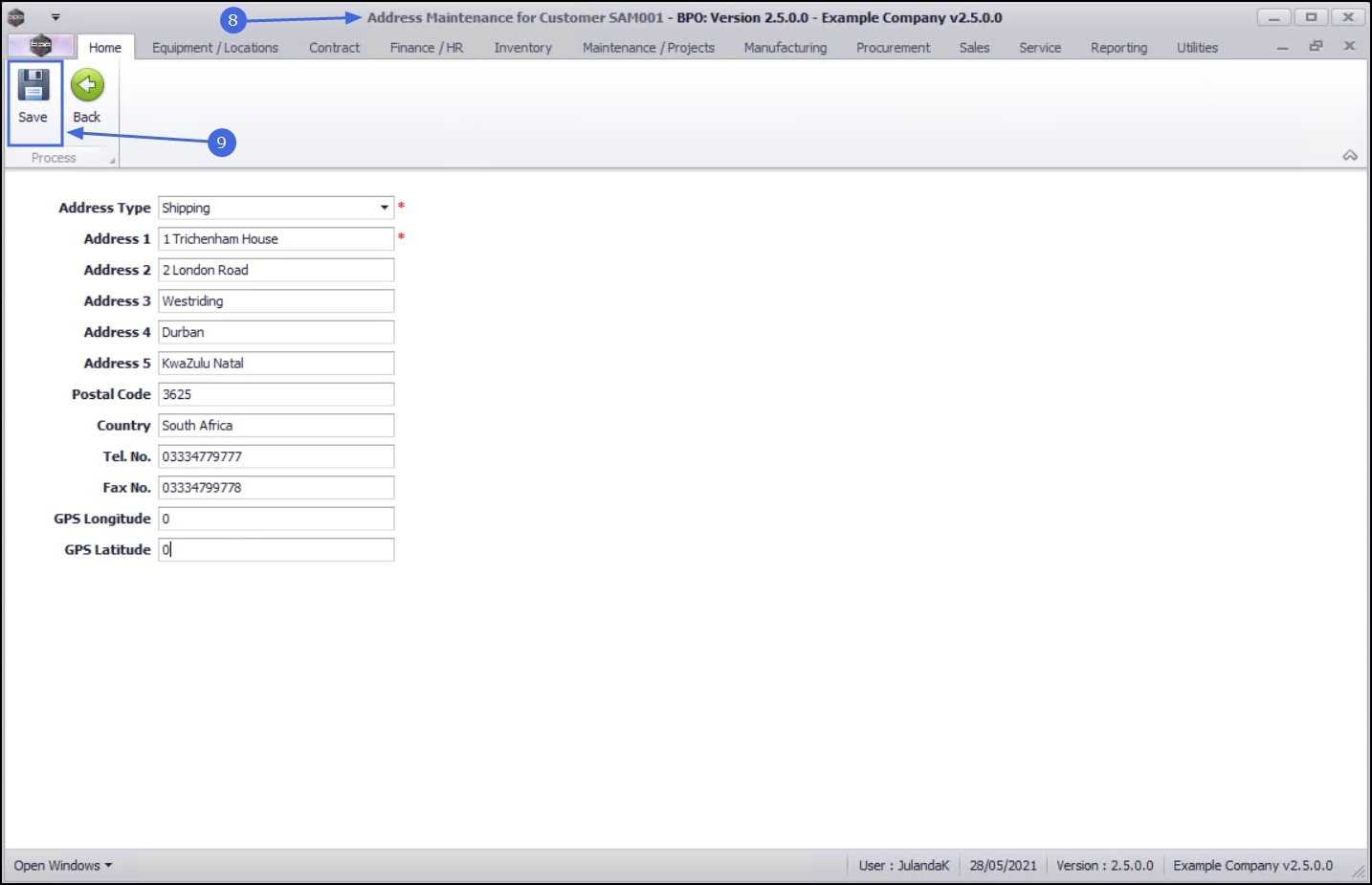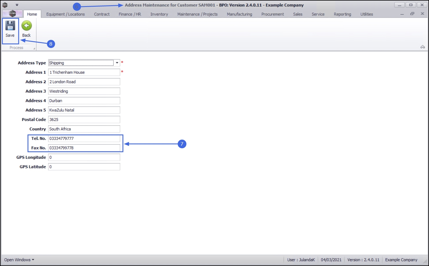 - GPS Longitude and GPS Latitude: Enter the GPS details for the Customer if available.