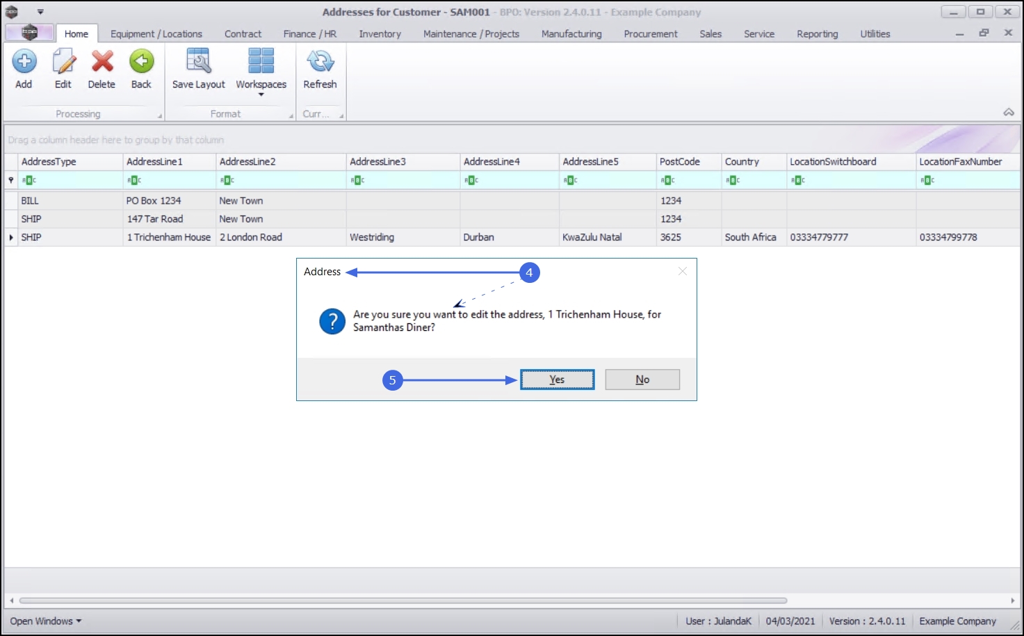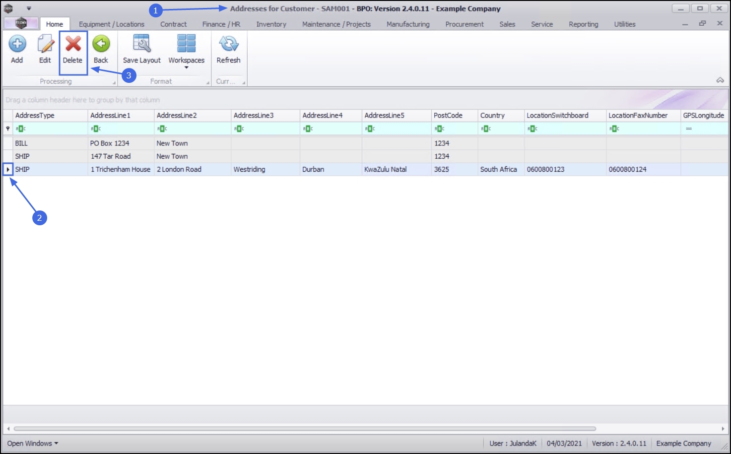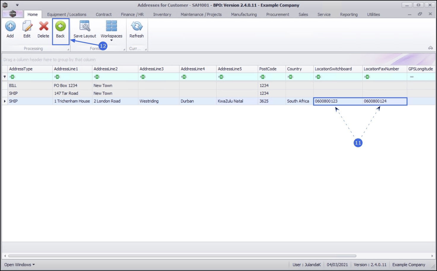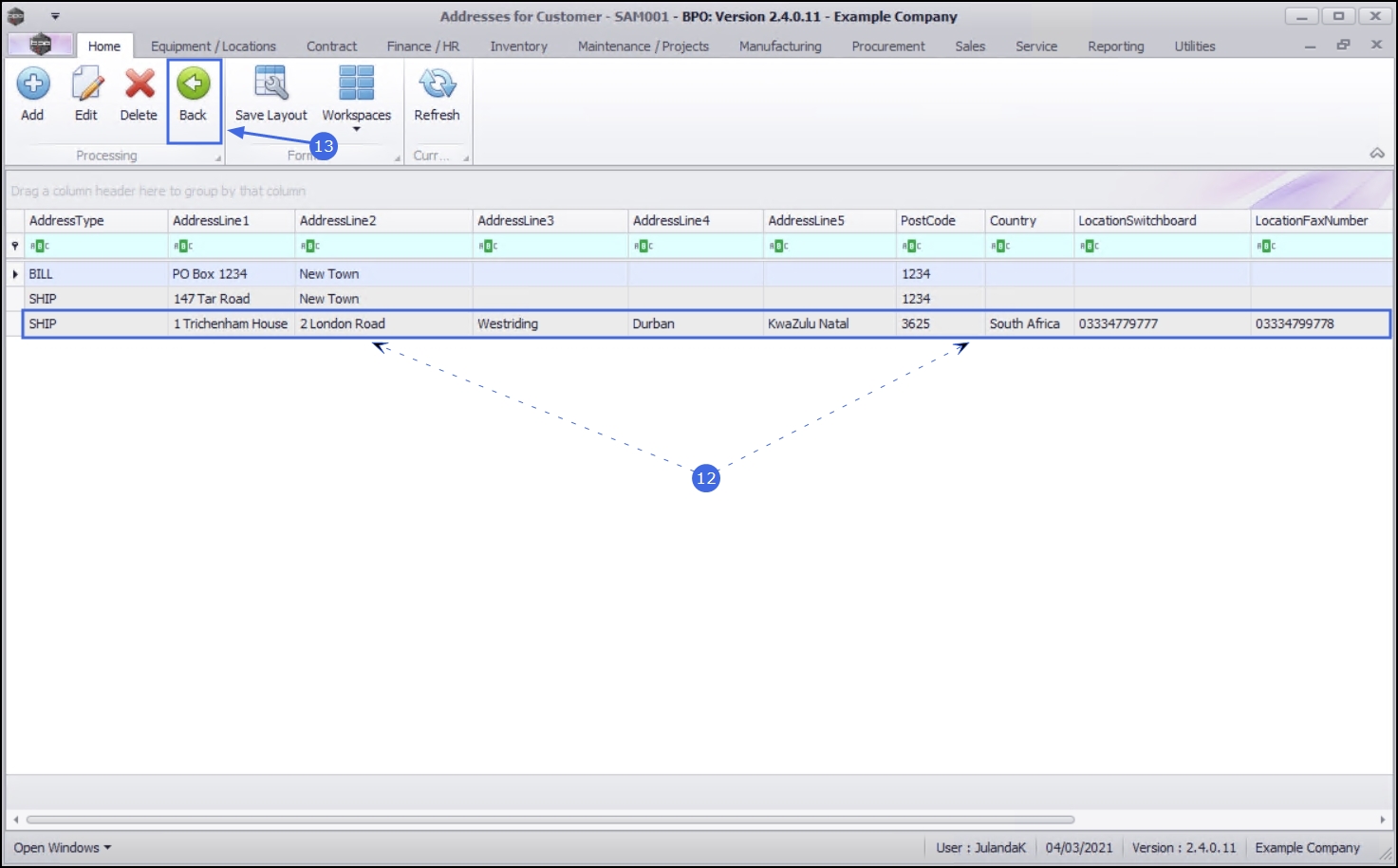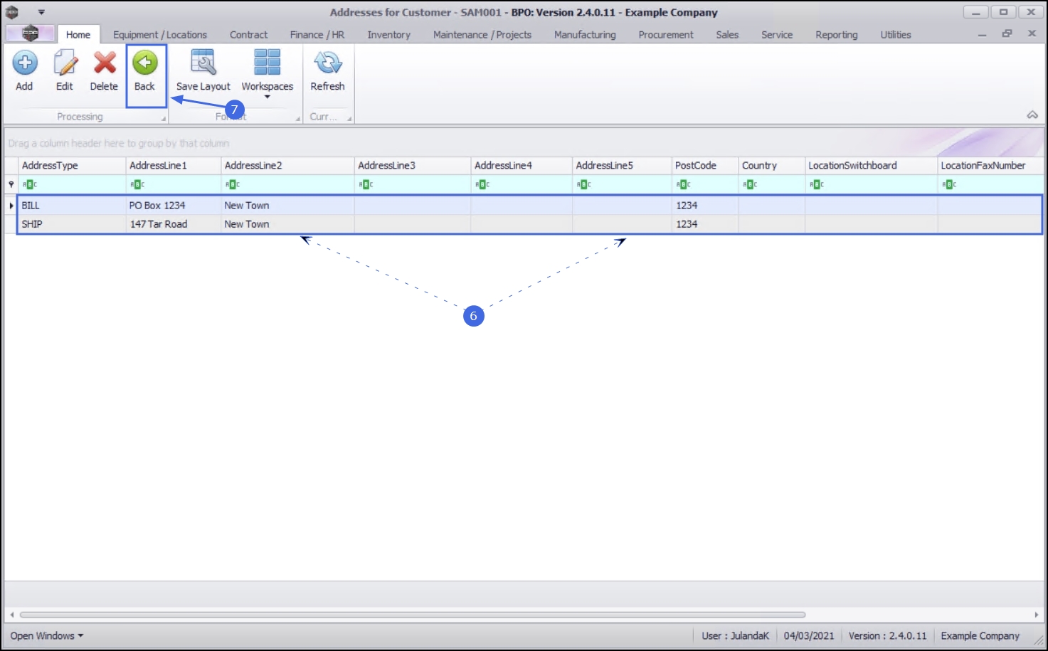 - The newly added address can now be viewed in the Addresses for Customer screen.
