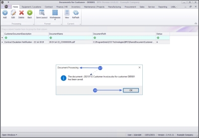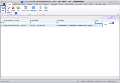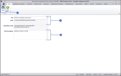 1. The Document maintenance for customer [customer code] screen will be displayed with the selected file information populating the fields.