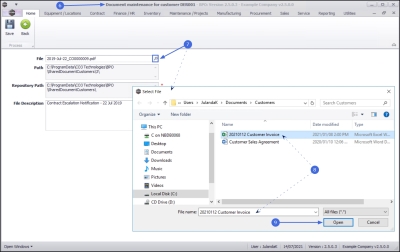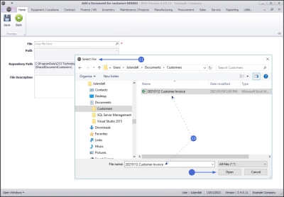 2. To edit the document currently linked to the customer, click on the search button in the File field to display the Select File screen.