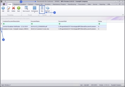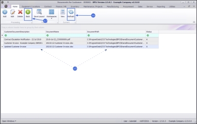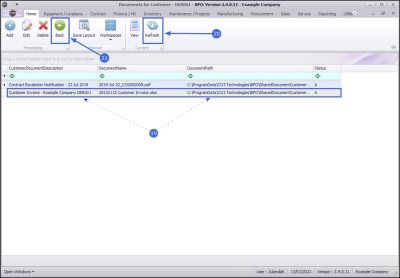 1. The Documents for Customer - [customer code] screen will be displayed.