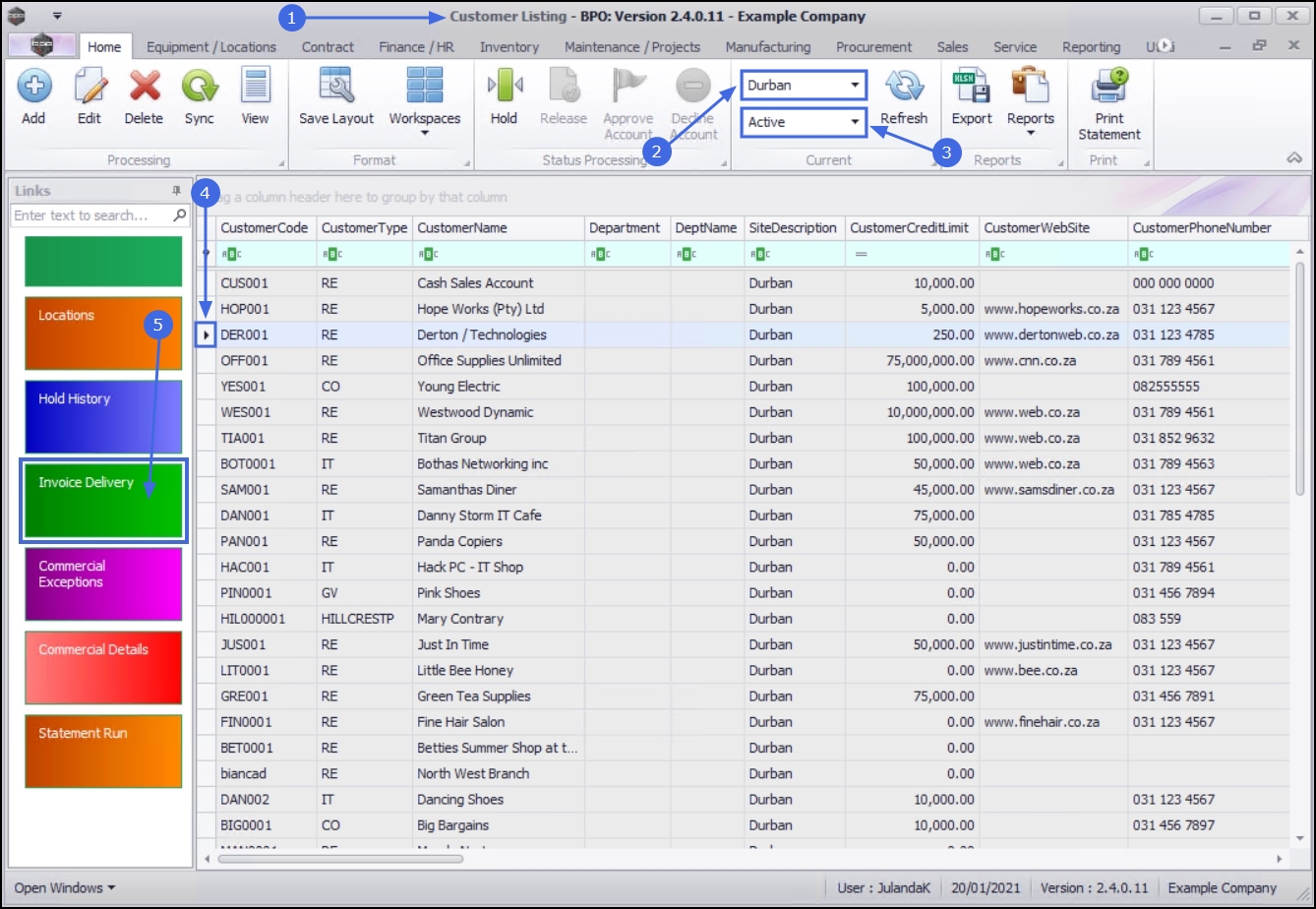- Select the row of the customer where you wish to add an Invoice Delivery method to.