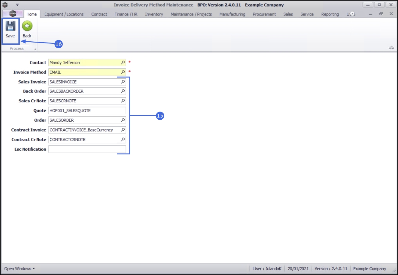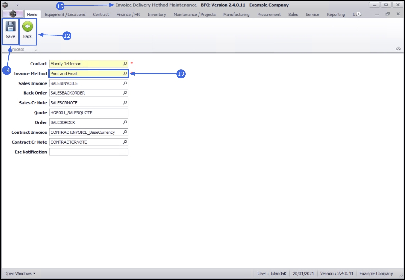 - The Invoice Delivery Method Maintenance screen will be displayed.
