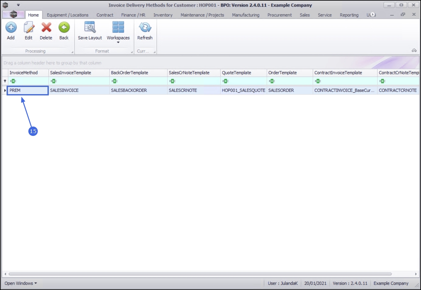 - Click on the row of the Invoice Method you wish to add to this customer.