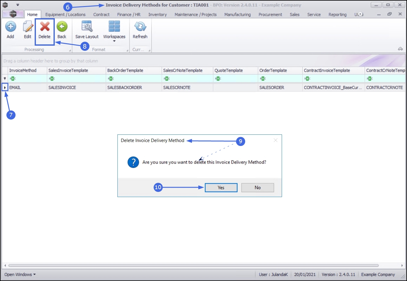 - When you receive the Delete Invoice Delivery Method message confirming;