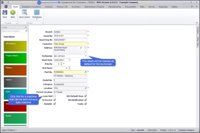 A Customer Asset should only be added in this manner when a customer brings in a machine, for service or repair, that was bought elsewhere and would therefore be a Customer Owned Asset. Refer to Introduction to Assets.