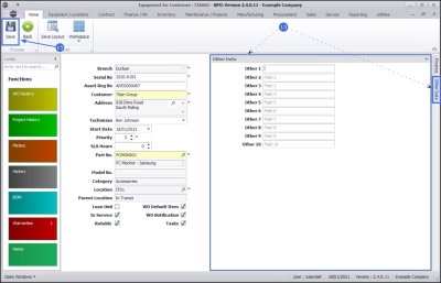 A servicing method in which an already-repaired equipment is exchanged for a failed quipment item, which in turn is repaired and kept for another exchange: Select this check box to indicate whether this asset is included in a rotable service plan. - WO Default Item: If this option is set in the company configuration, one machine per customer needs to be marked as the default. The default machine will pull through automatically when a customer is selected on a new call.
