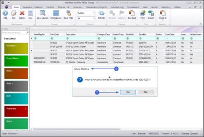 - Are you sure you want to inactivate this machine, code [serial number]?