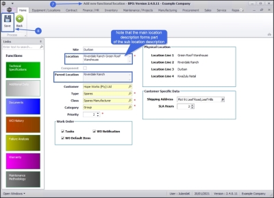When entering the location for a sub-location, it will help you to identify it later if the Main Location description forms part