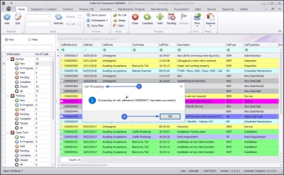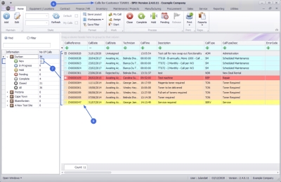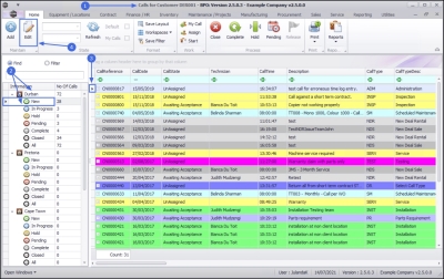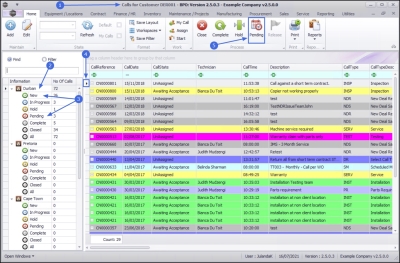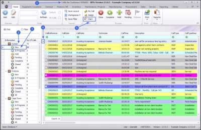- The Calls are colour-coded by Call Type, e.g. all Service Calls are displayed as yellow.