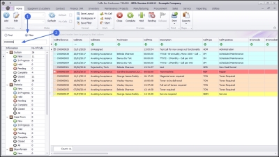 Note that the Call Reference column filter row added the ‘%’ variable at the end of the Call Reference, and the Edit Filter row now contains the filter details: [Call Reference] Like 'CN00006%'. - To remove the Filter, either, Delete or backspace over the text in the in the Filter Row of the Call Reference column, or click on the [X] in the Edit Filter row.