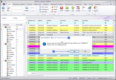 Once the Technician has completed the work required, the call can be set to Completed.