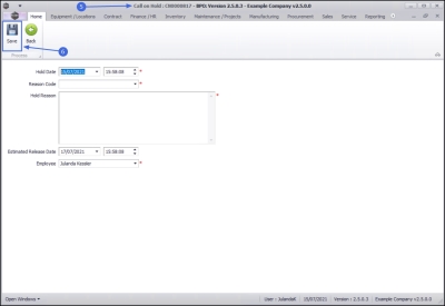 - Complete the hold information for the call and click on Save.
