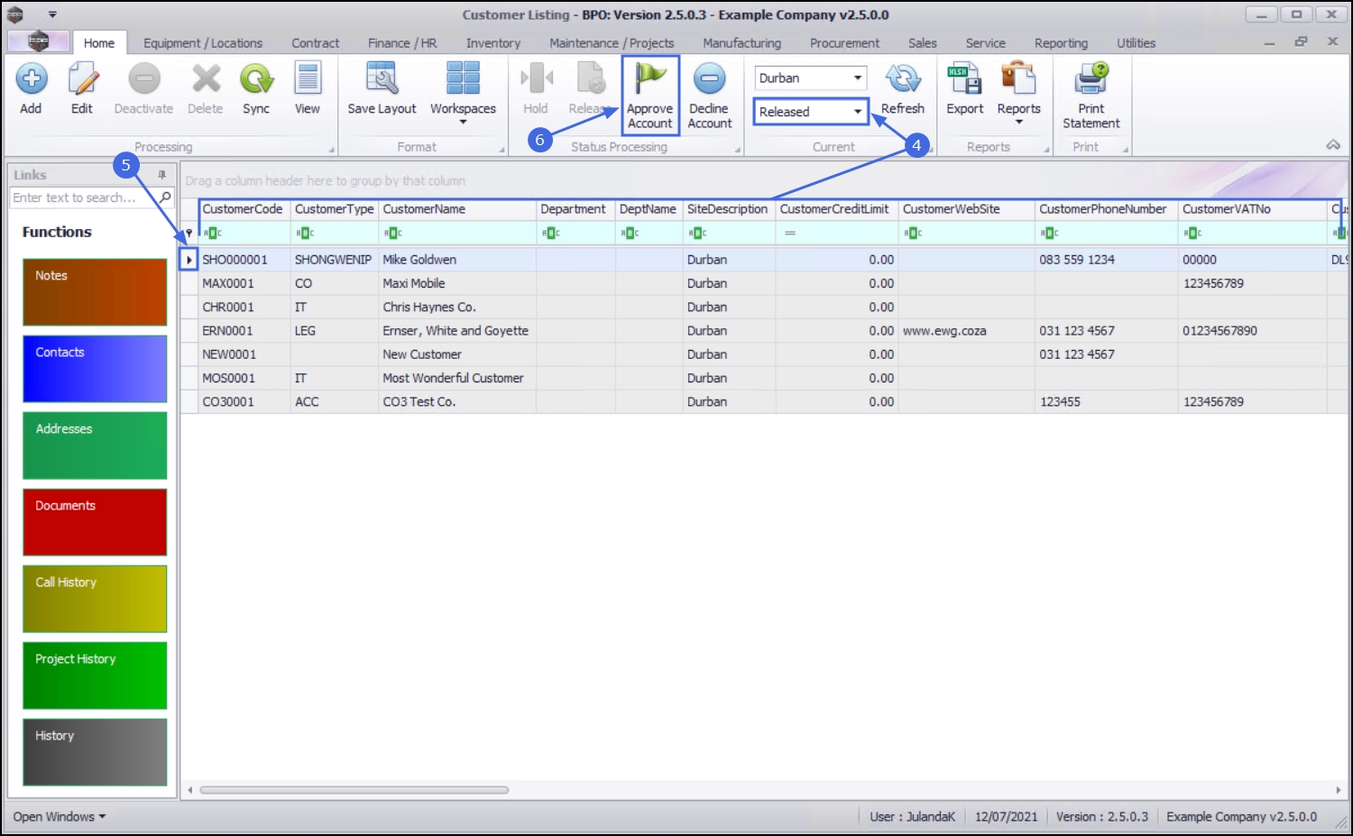 Once this has been done, the new customer can be Approved and will then be Active in BPO2 and will move to the Released status.