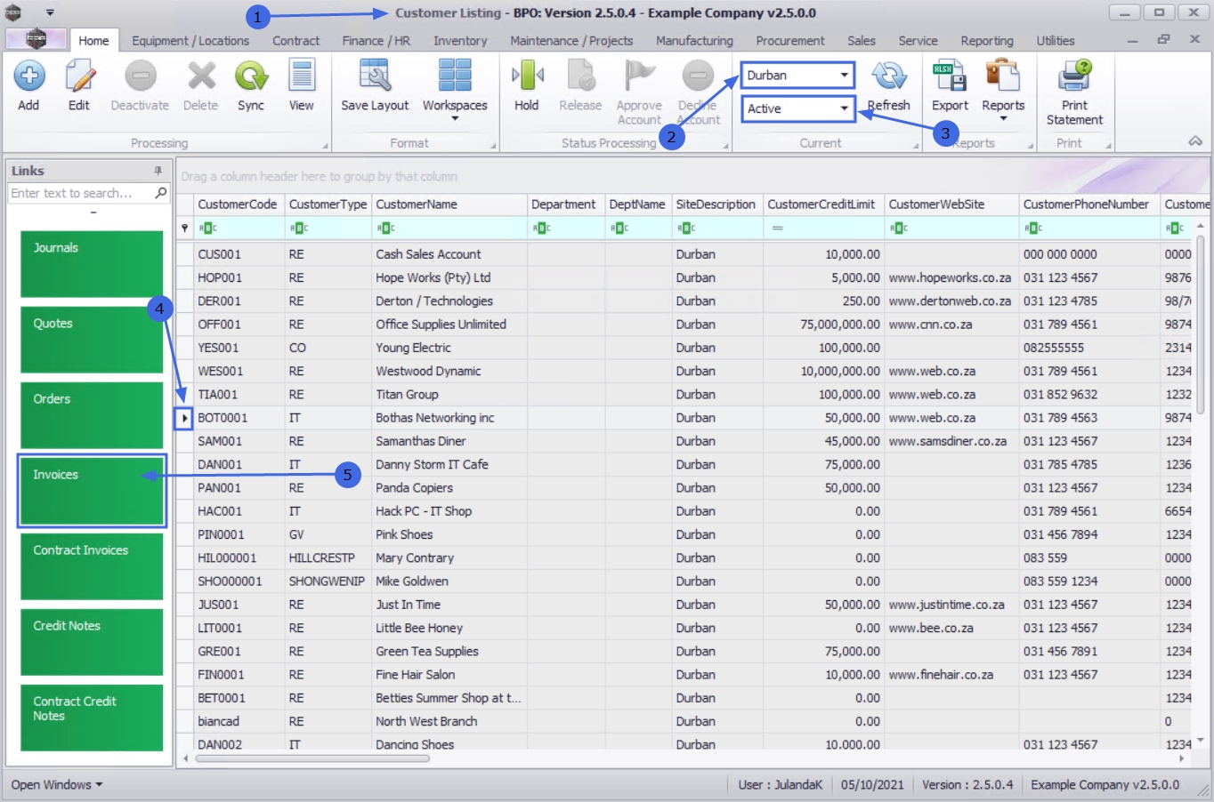 - Select the row of the customer whose Invoices you wish to work with.