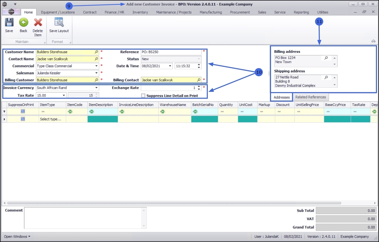 - Add the Items to be Invoiced as required.