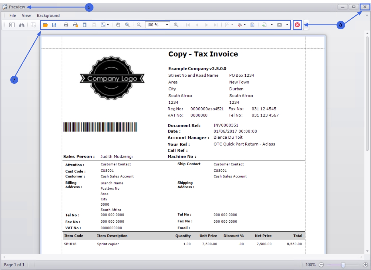 - The Tax Invoice will display in the Preview screen.