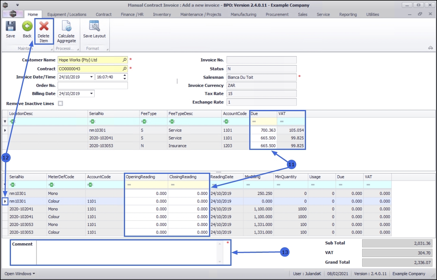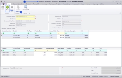 - Click on Save to save the new Manual Contract and to return to the Contract Invoices for Customer screen.