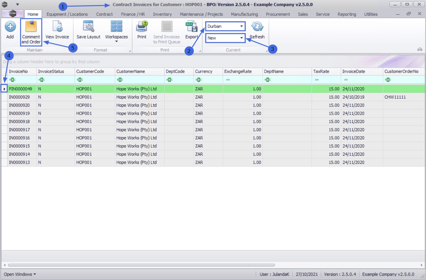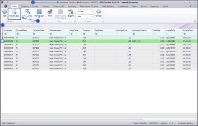 - Select the row of the customer whose contract invoices you wish to work with.