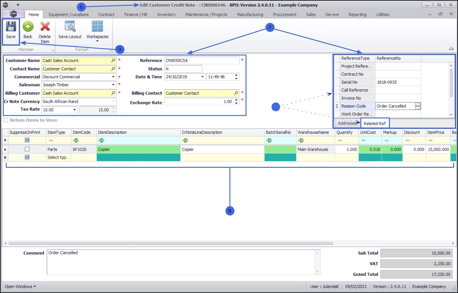 - Click on Related Ref tab to link any reference information related to the Credit Note, e.g. Project Reference, Reason Code, Invoice Number etc.