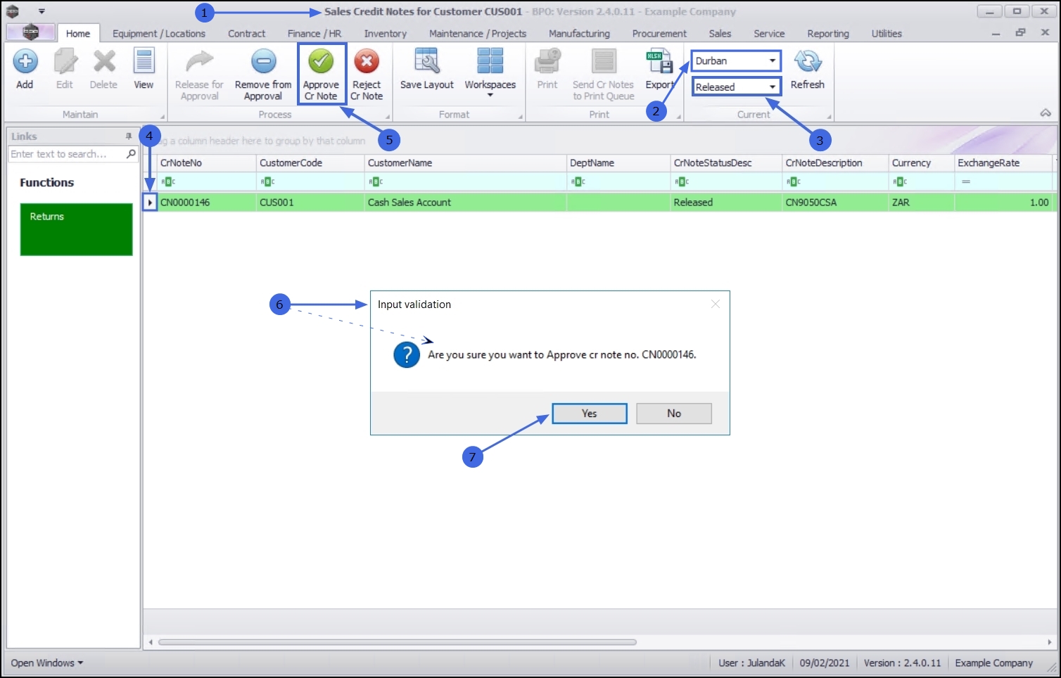 - Releasing Credit Note for Approval / Removing Credit Note from Approval